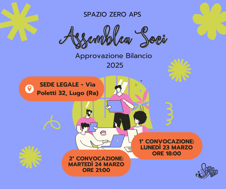 L’Associazione Spazio Zero Aps convoca l’Assemblea dei Soci per l’approvazione del Bilancio 2025.